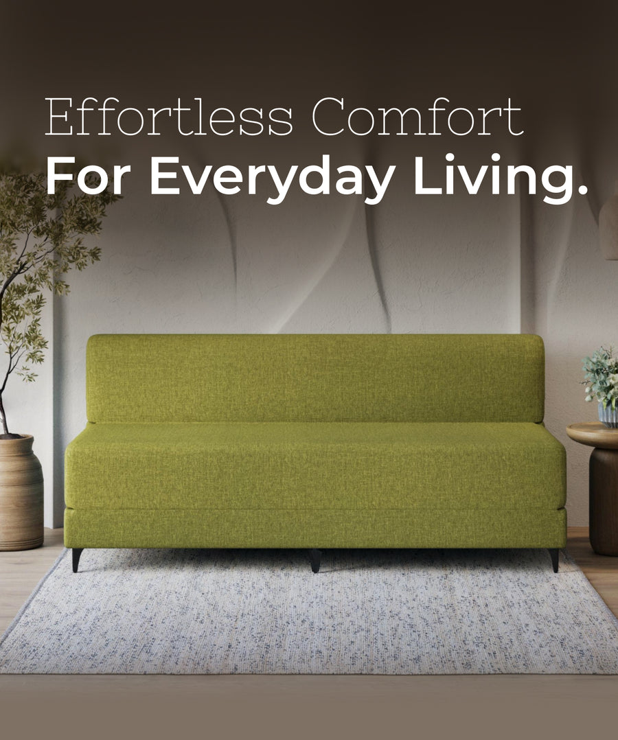 Bring home the Uberlyfe Portland Sofa Cum Bed — where comfort meets clever craftsmanship. Compact, beautiful, and built for the way you live. 🌿