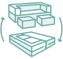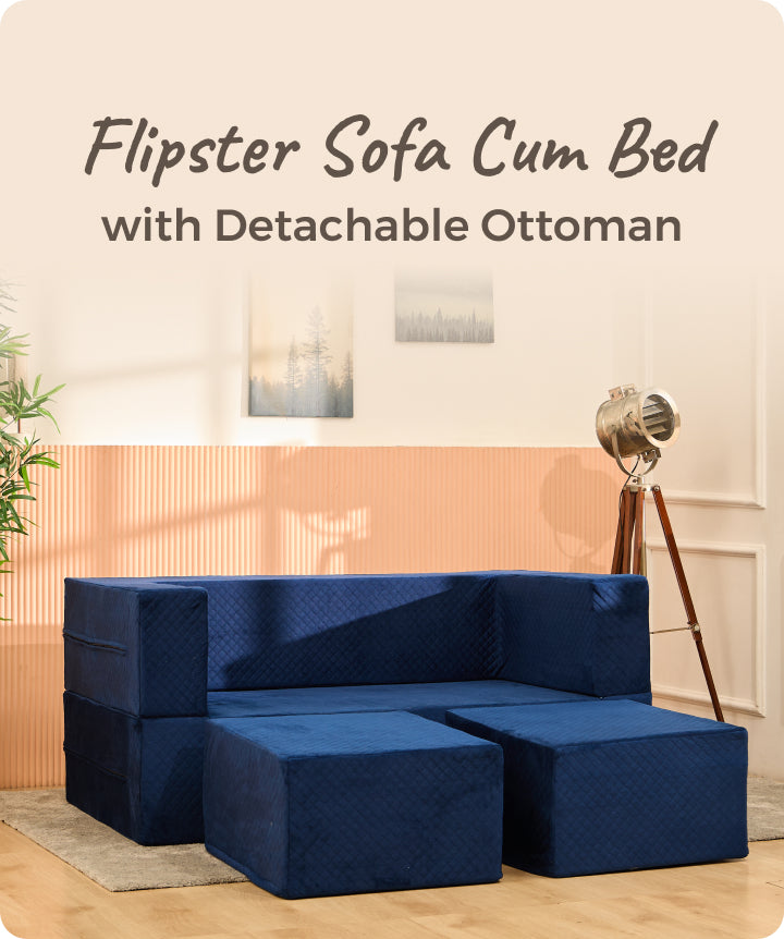 The flipster sofa cum beds can transform into a comfortable 13 inch high queen sized bed by just flipping its arm over and placing the two ottomans in the gap.
